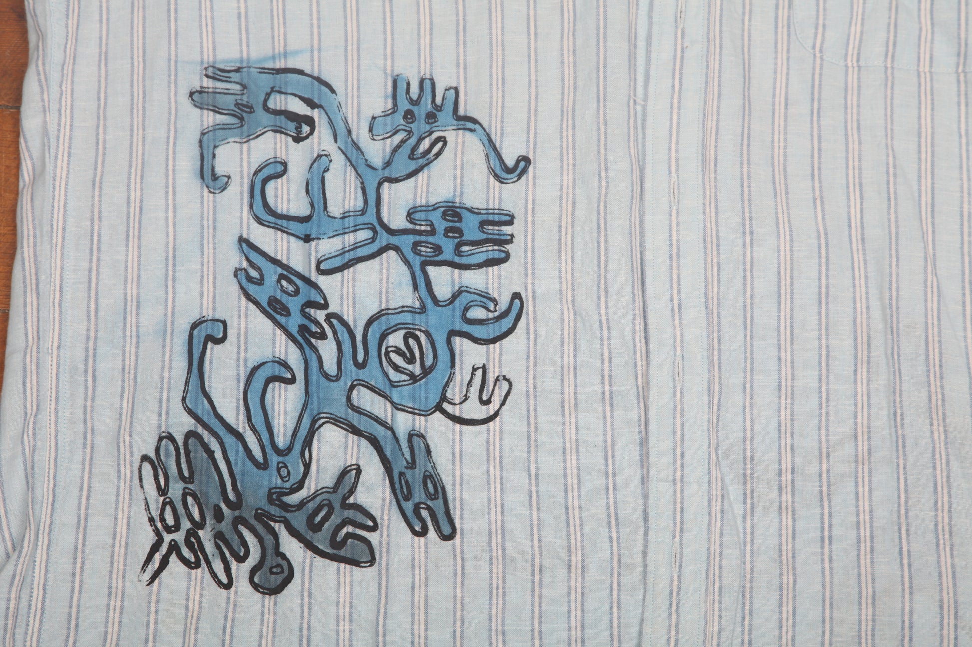 Soft striped Levi's shirt with 1of1 upcycled designs using airbrush and screen-print.