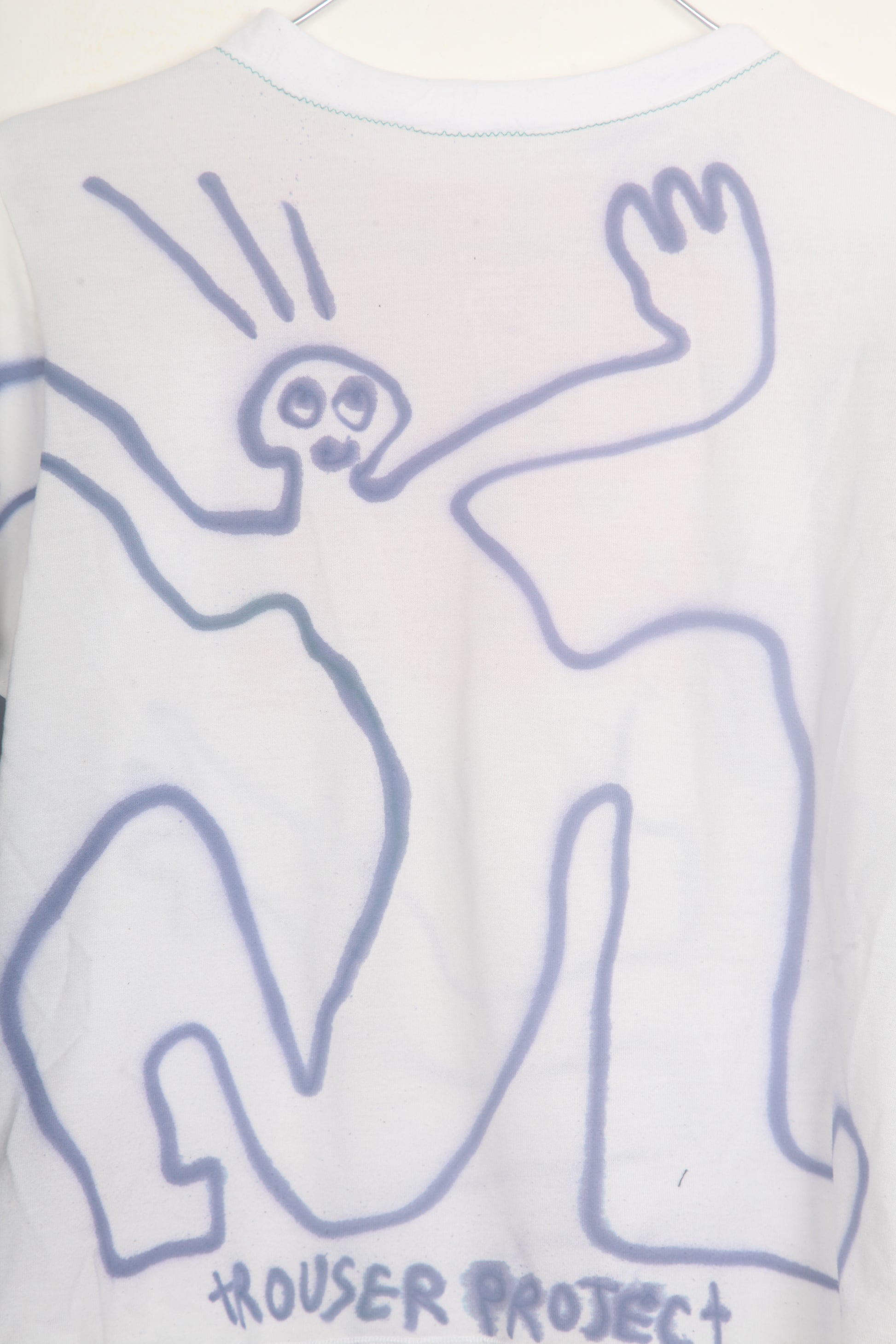 Long sleeve baby tee made from second hand fabrics. White, navy, purple with airbrush designs, to sustainably create a 1of1 item.