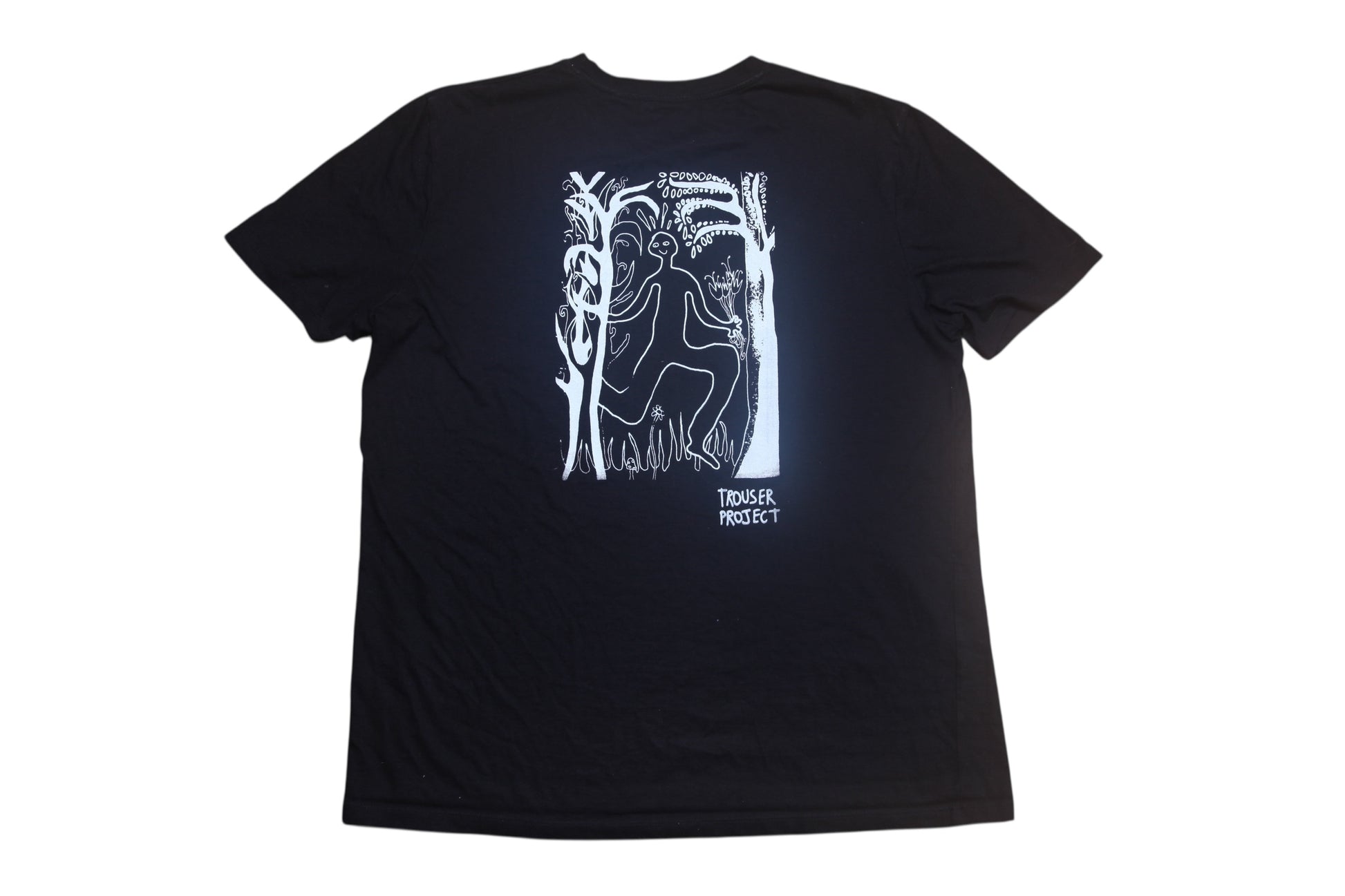 Pre-loved black T-Shirt upcycled with graphic screen-print design. 1of1 item.