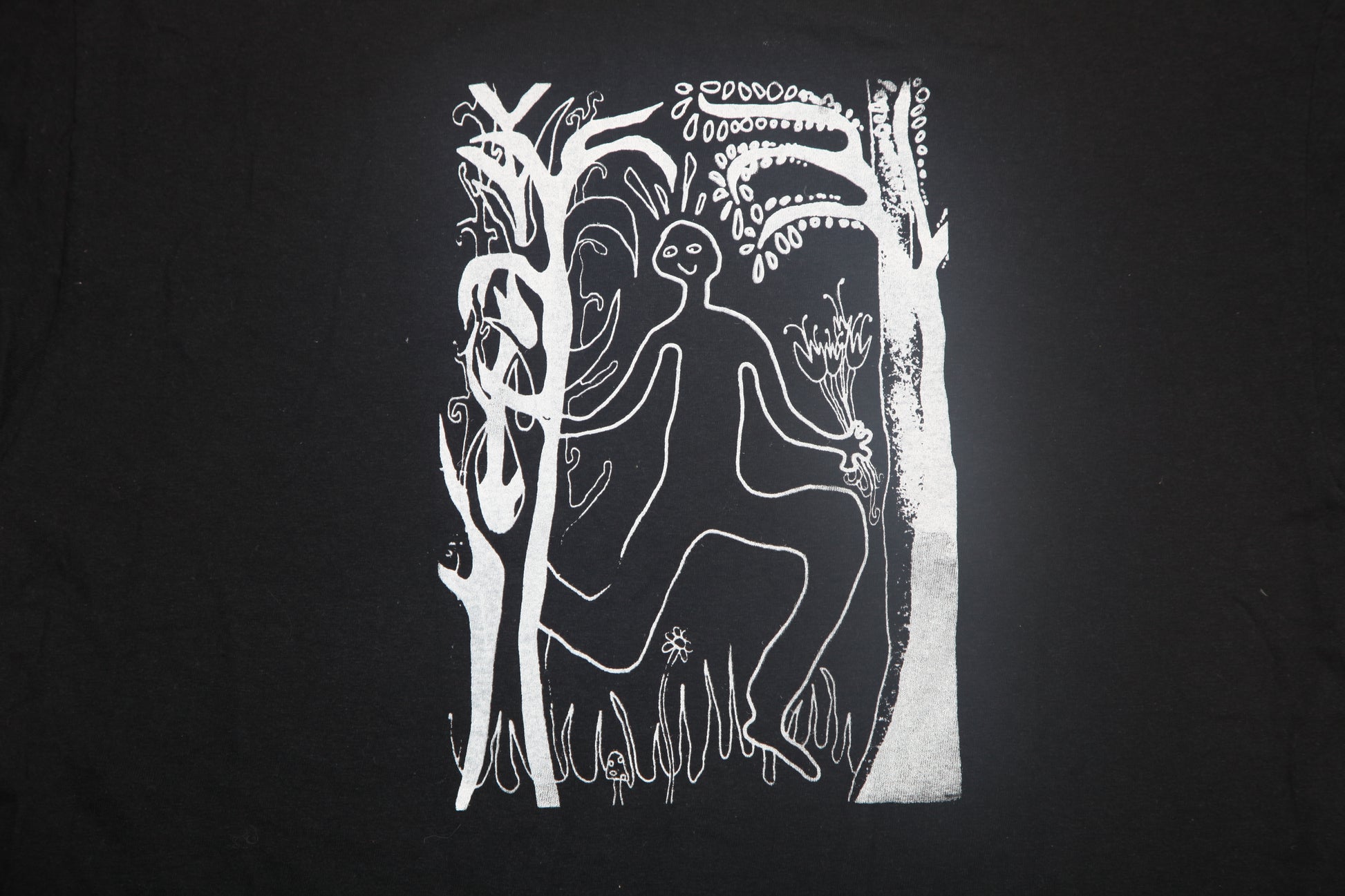 Pre-loved black T-Shirt upcycled with graphic screen-print designs. 1of1 item.