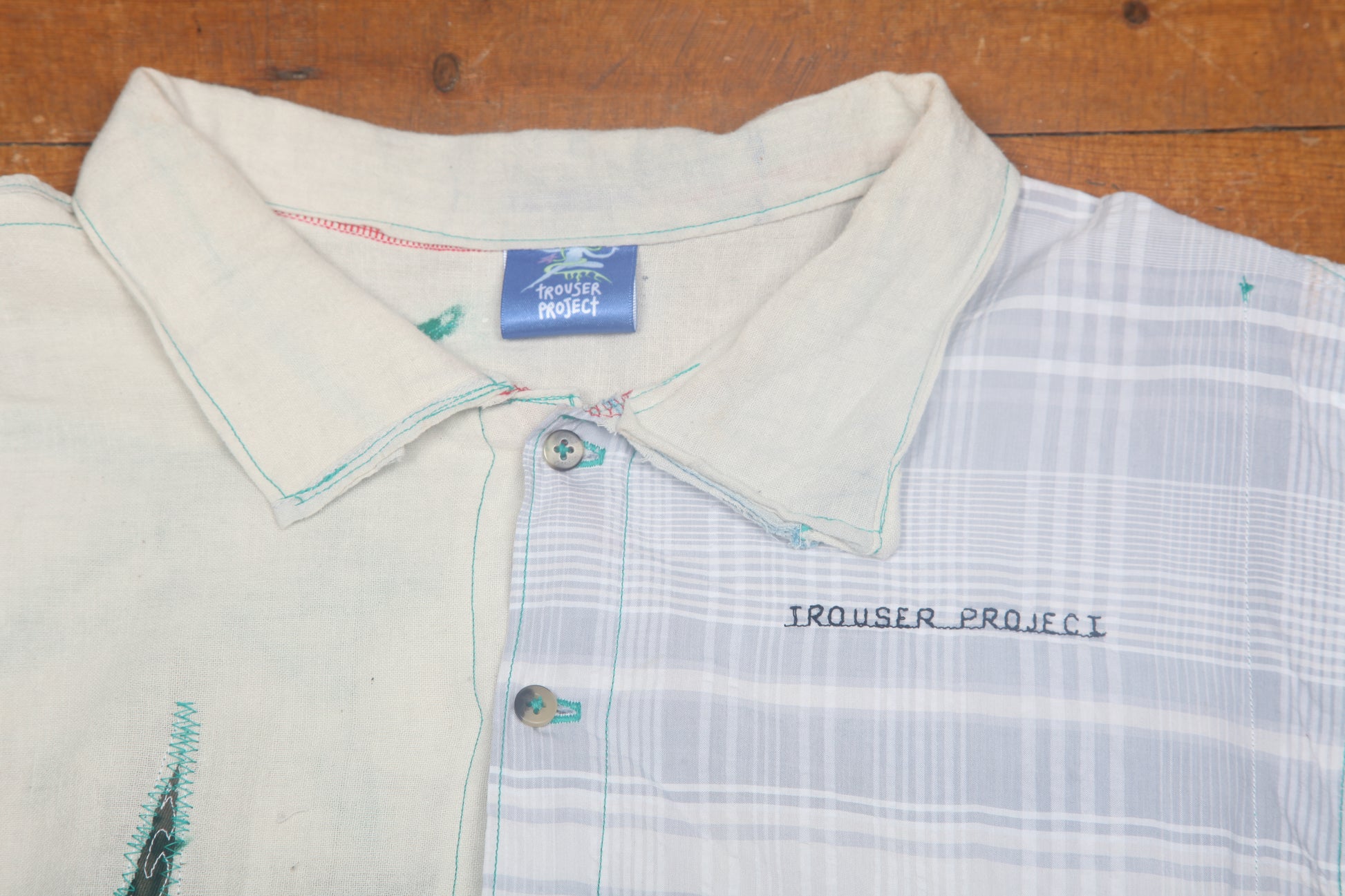 Hand crafted long sleeve shirt sustainably made using second hand materials. Soft, casual, comfortable, boxy shape. Unique appliqué and embroidered designs. Unisex.