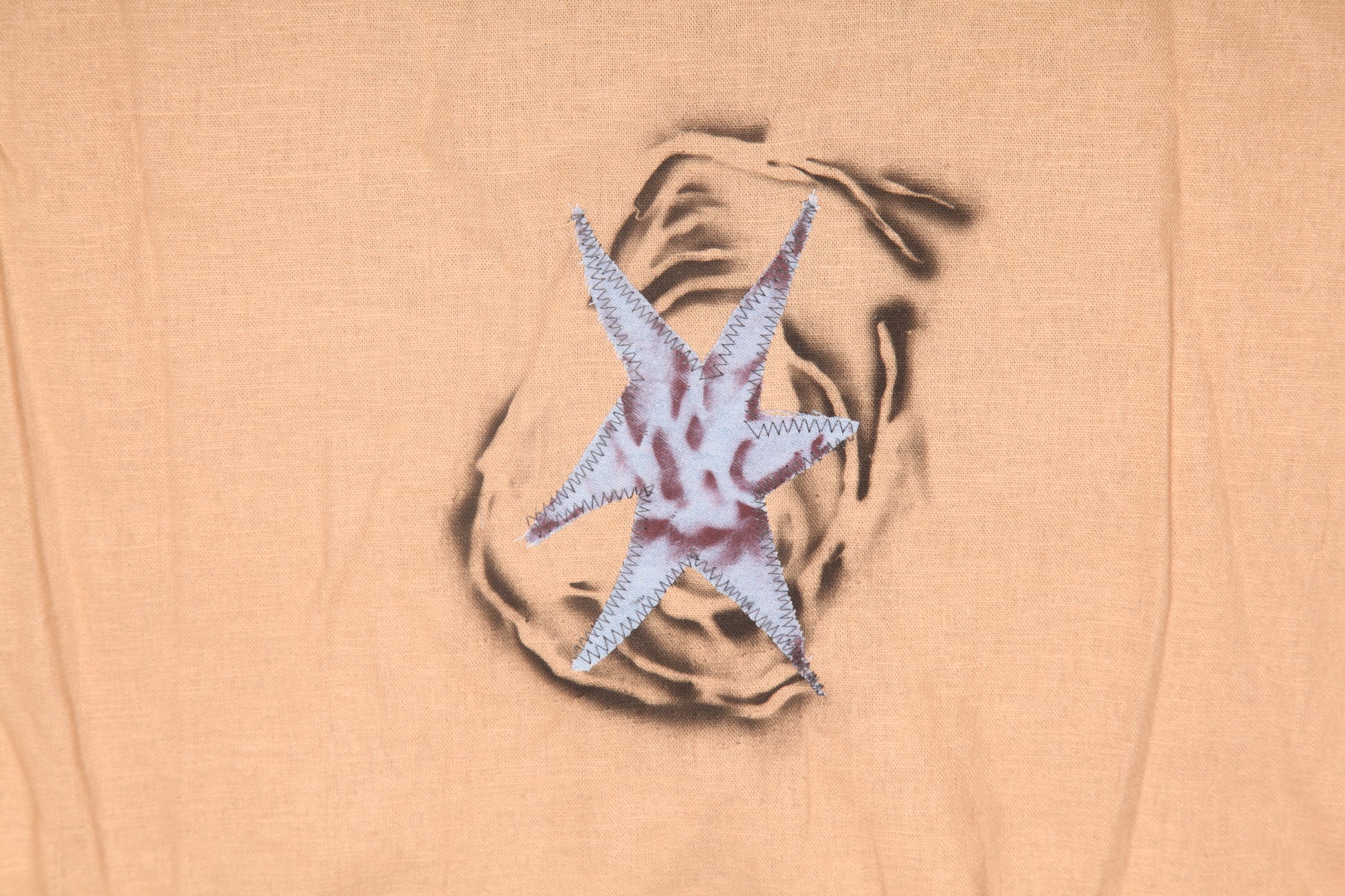 Hand crafted using donated deadstock fabrics, designed using appliqué and airbrush to create a unique pattern. Boxy worker style loose lightweight summer shirt with pockets.