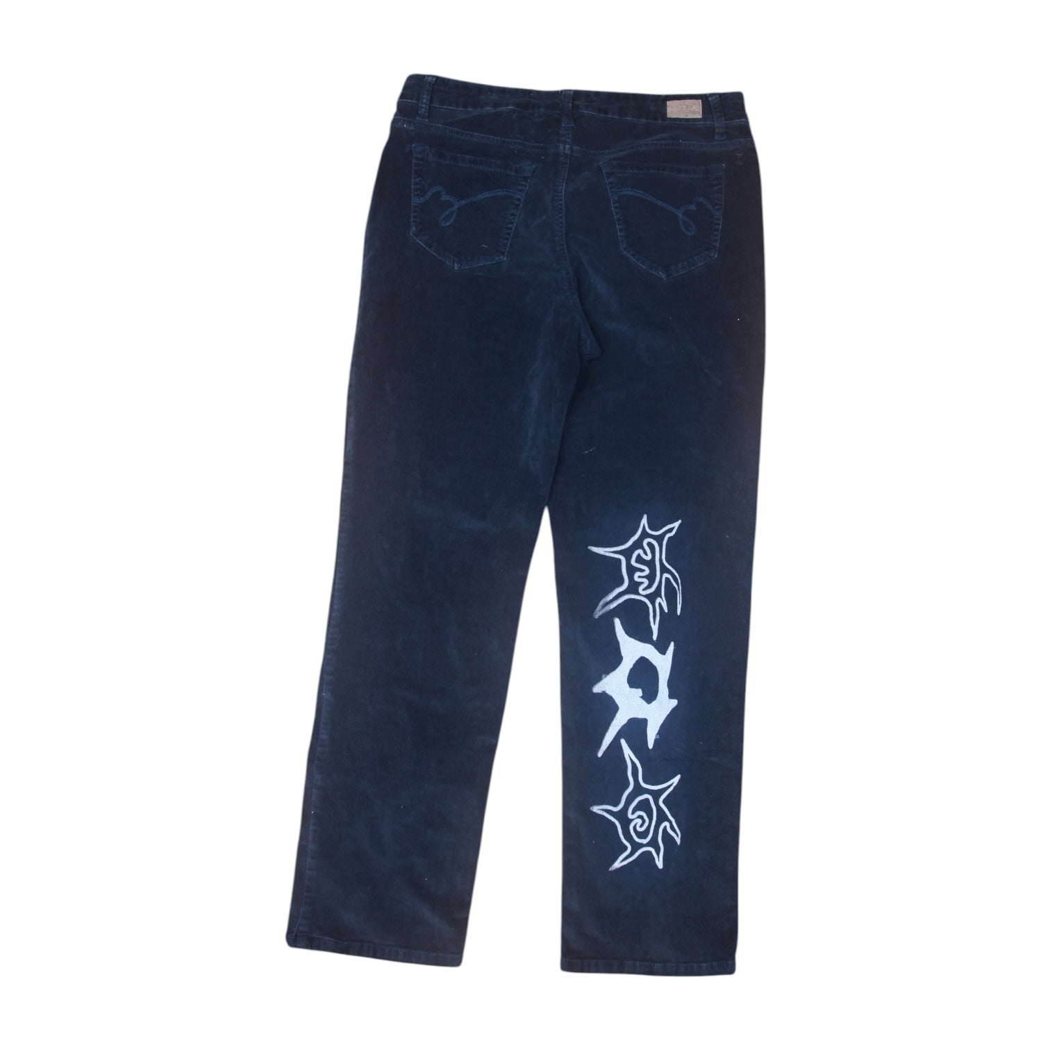 Navy coloured cords 1of1 reworked piece - airbrush and appliqué