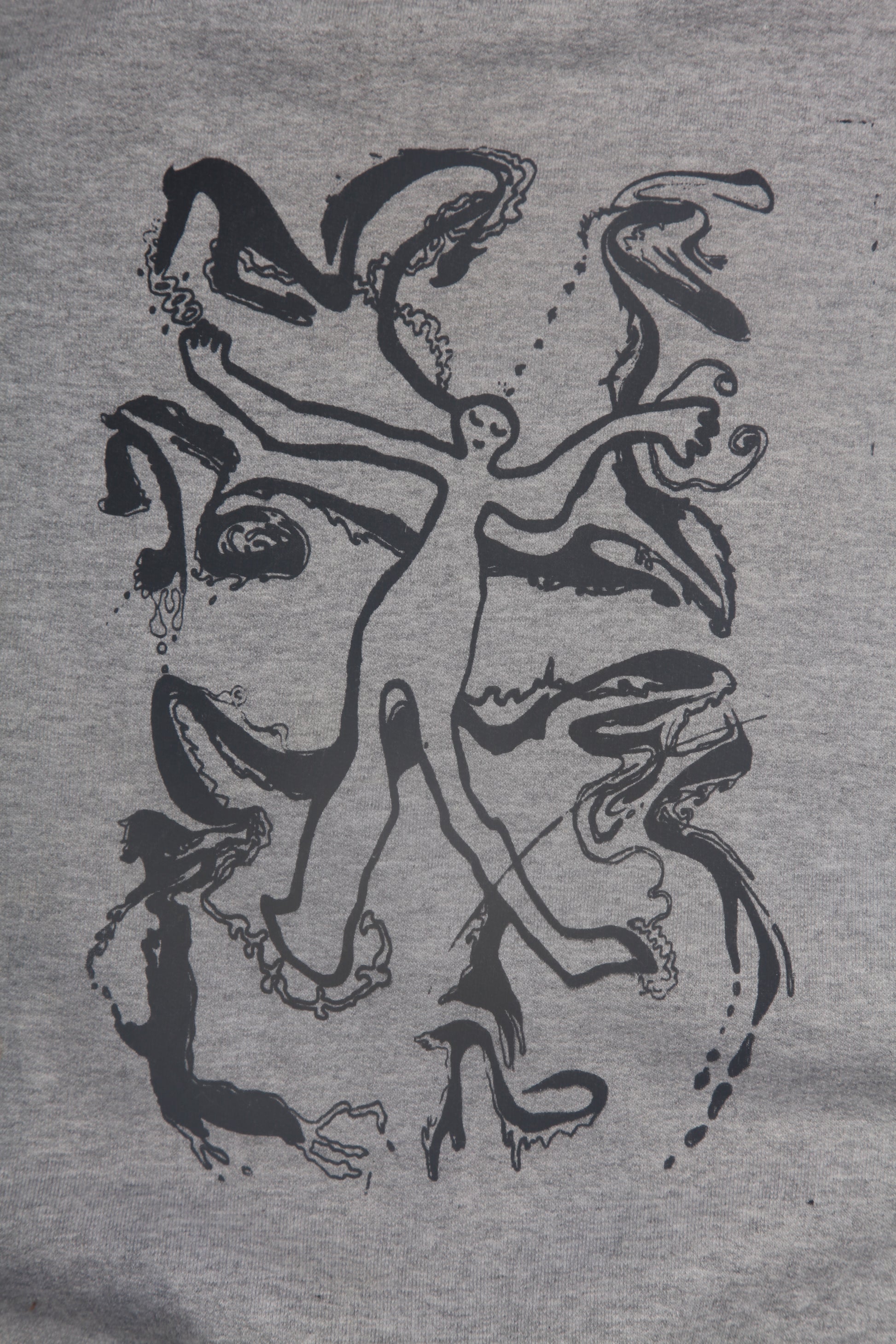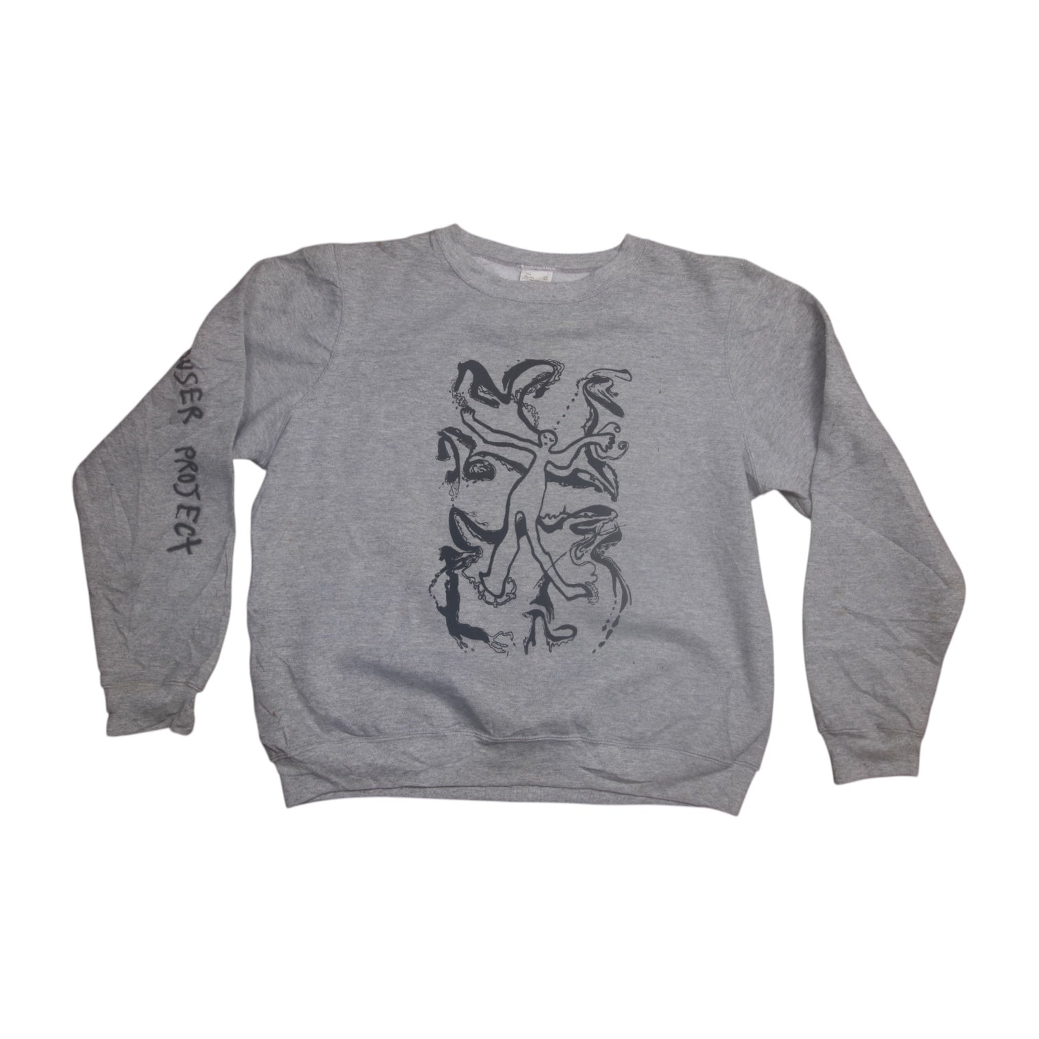Pre-loved cosy pullover grey jumper upcycled with graphic screen-print design. 1of1 item.