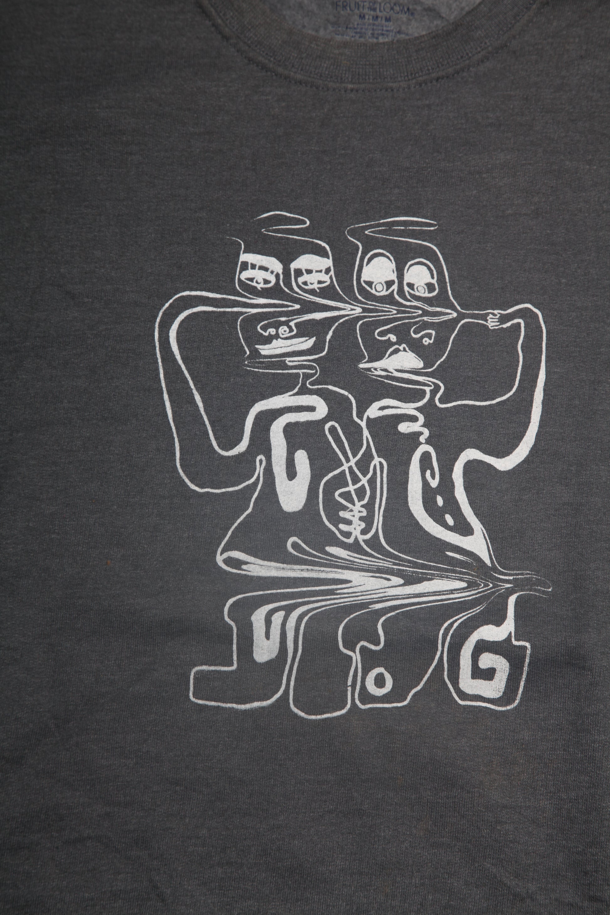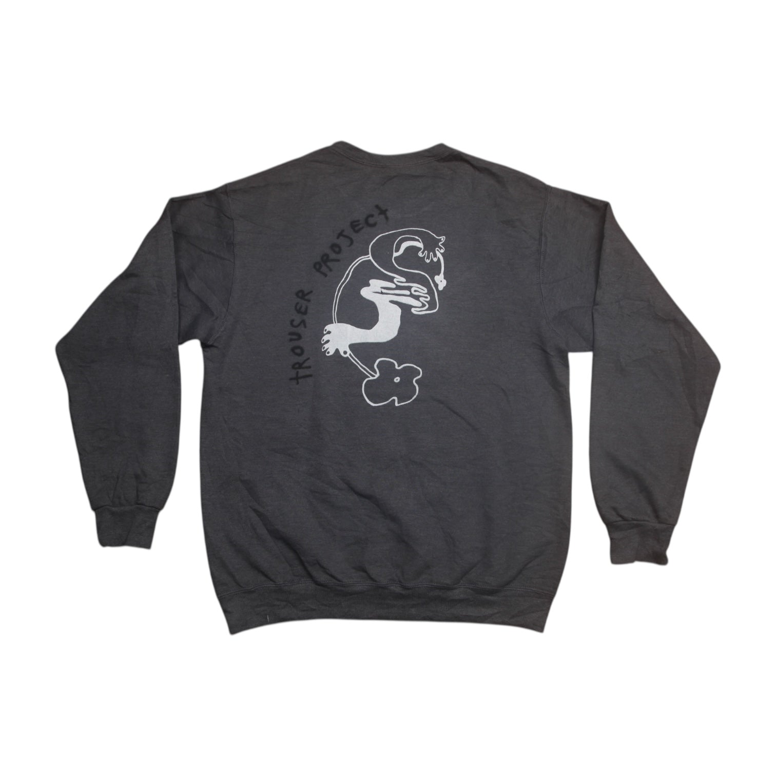 Pre-loved cosy pullover grey jumper upcycled with graphic screen-print design. 1of1 item.