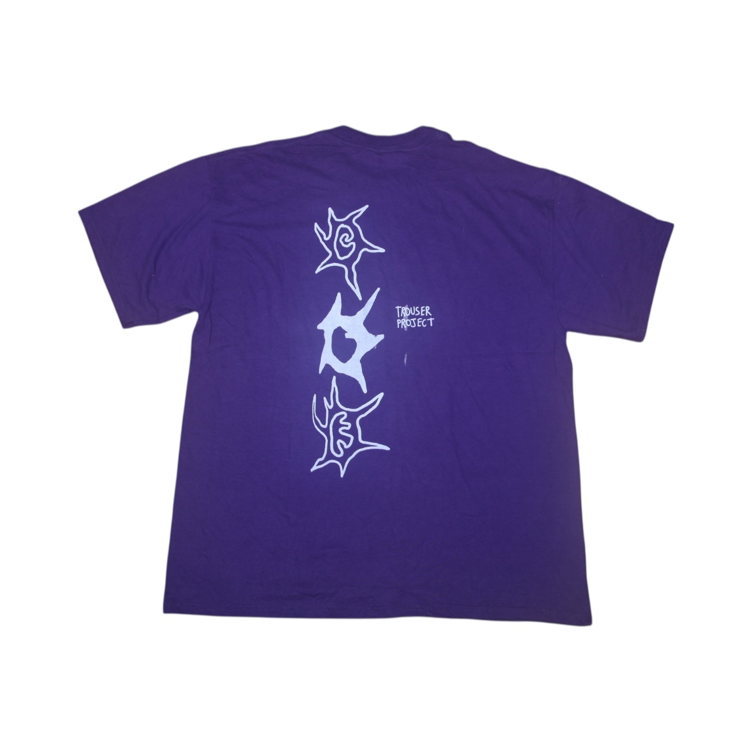 1of1 Hand printed pre-loved purple T-shirt, sustainably sourced and upcycled with graphic screen-print design.