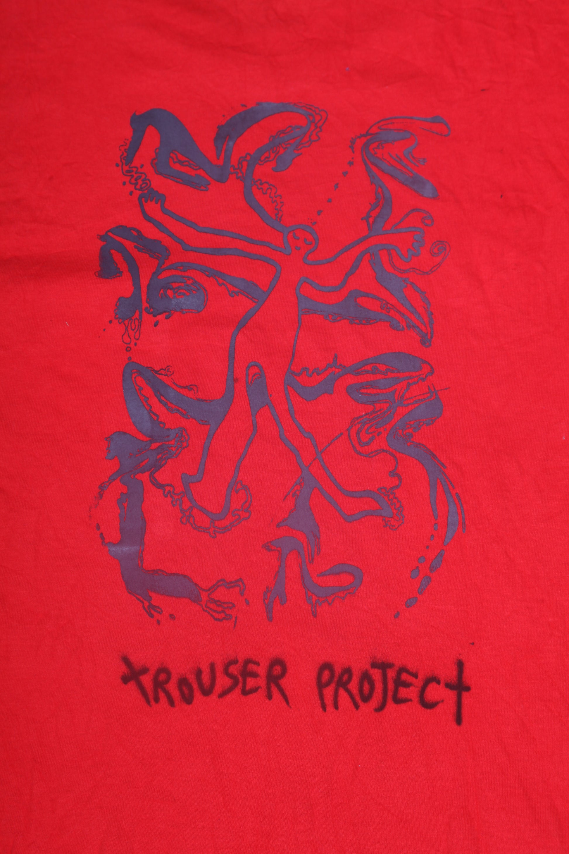 1of1 Hand printed pre-loved red T-shirt, sustainably sourced and upcycled with graphic screen-print and airbrush design.