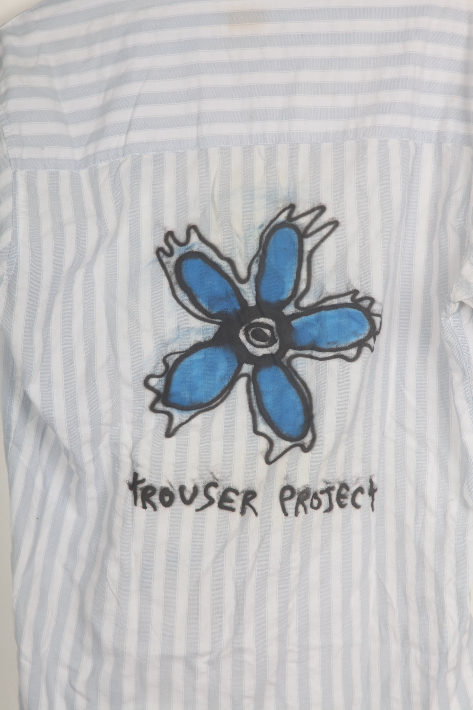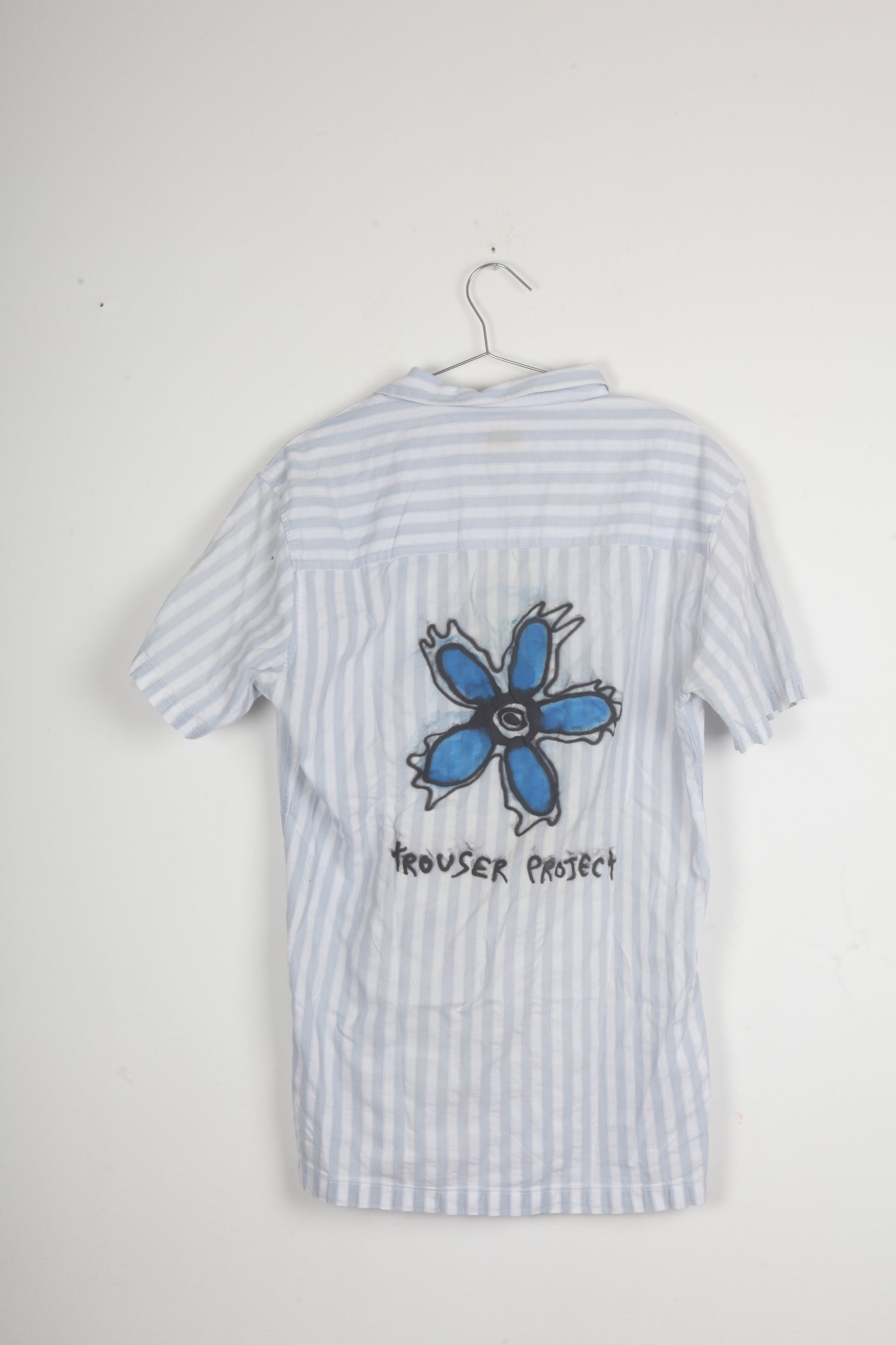 Pre-loved upcycled stripy button up shirt with freehand 1of1 airbrush designs.