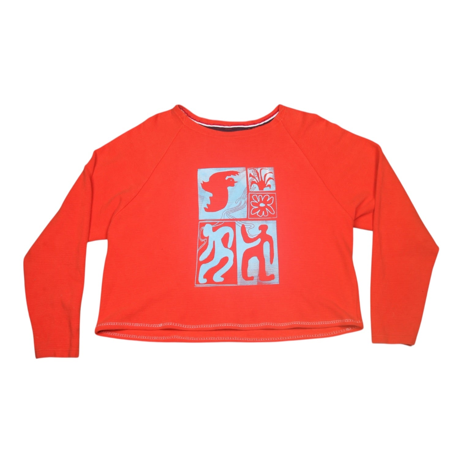 Pre-loved upcycled orange jumper, reworked with screenprints and airbrush designs. 1of1 item made with love in our Brighton studio. Slightly cropped for boxy fit.
