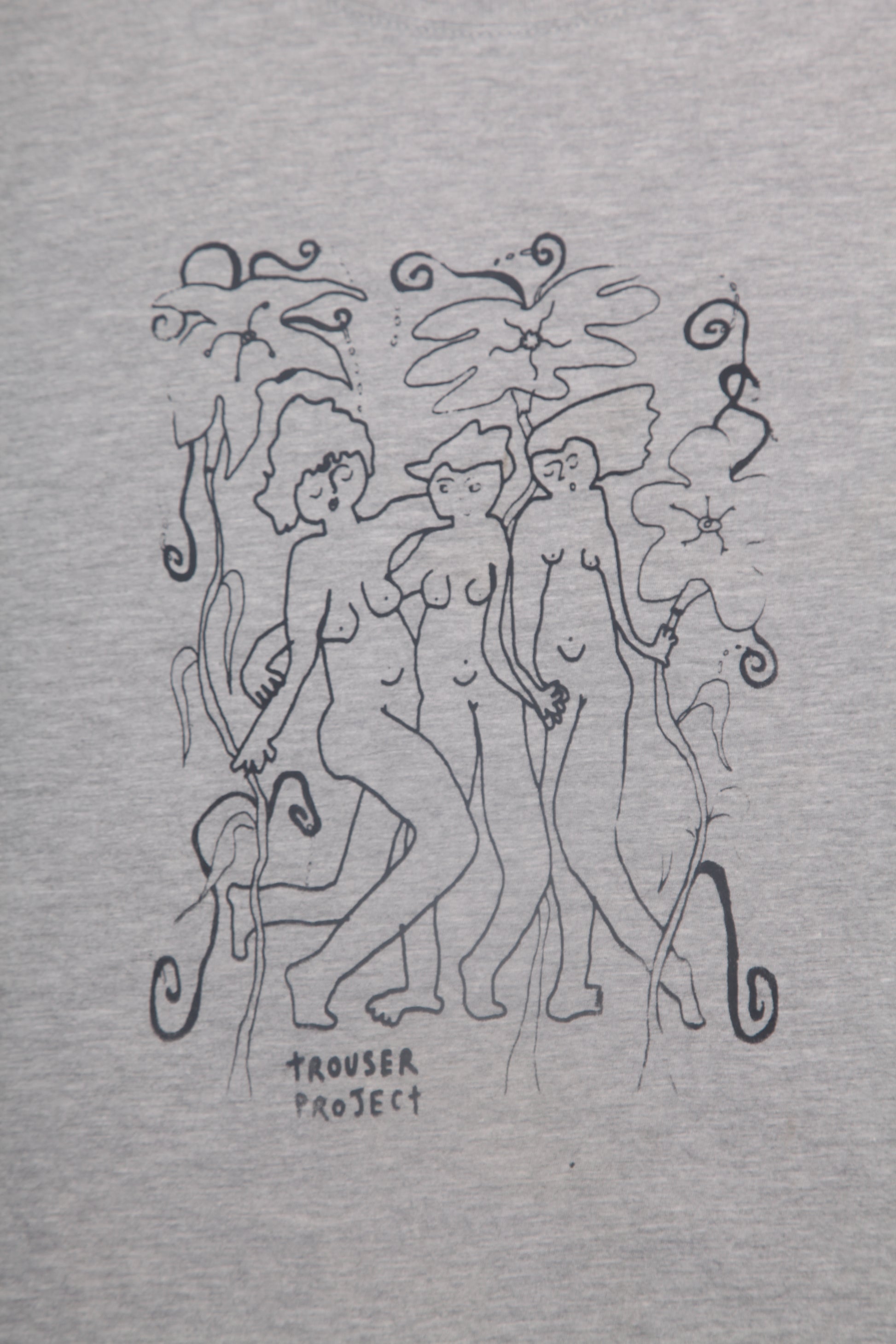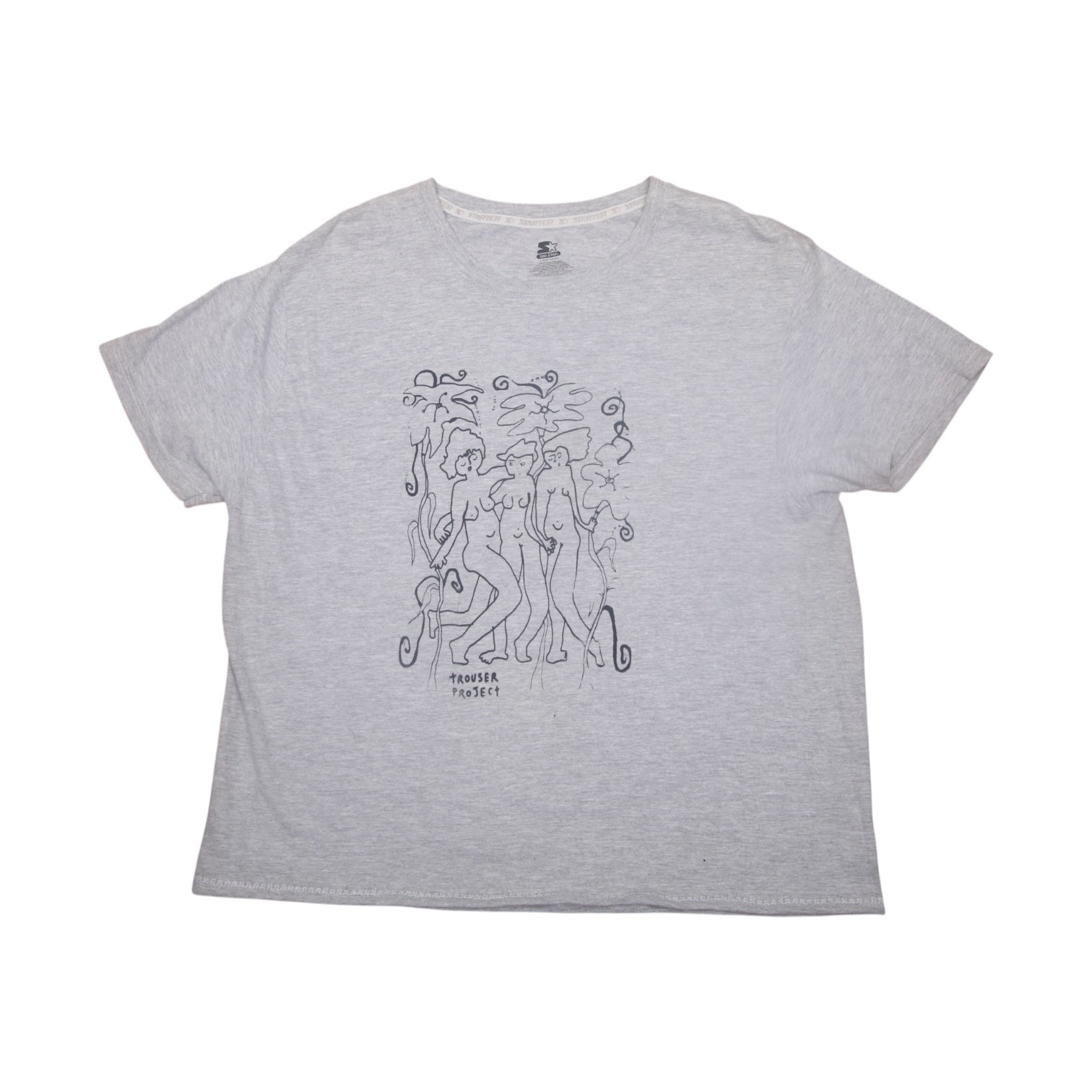 Pre-loved grey T-Shirt with graphic screen-print design. Sustainable, hand printed, and one-of-a-kind. Please note that all items are sourced second hand so may have some wear, any marks have been covered with the new designs. The label may say a different size, I have used a standard sizing chart to keep it consistent.