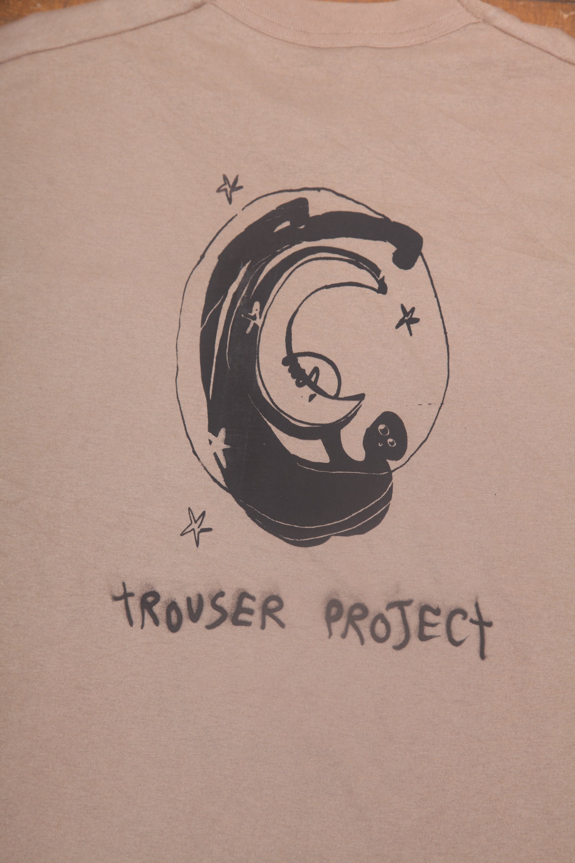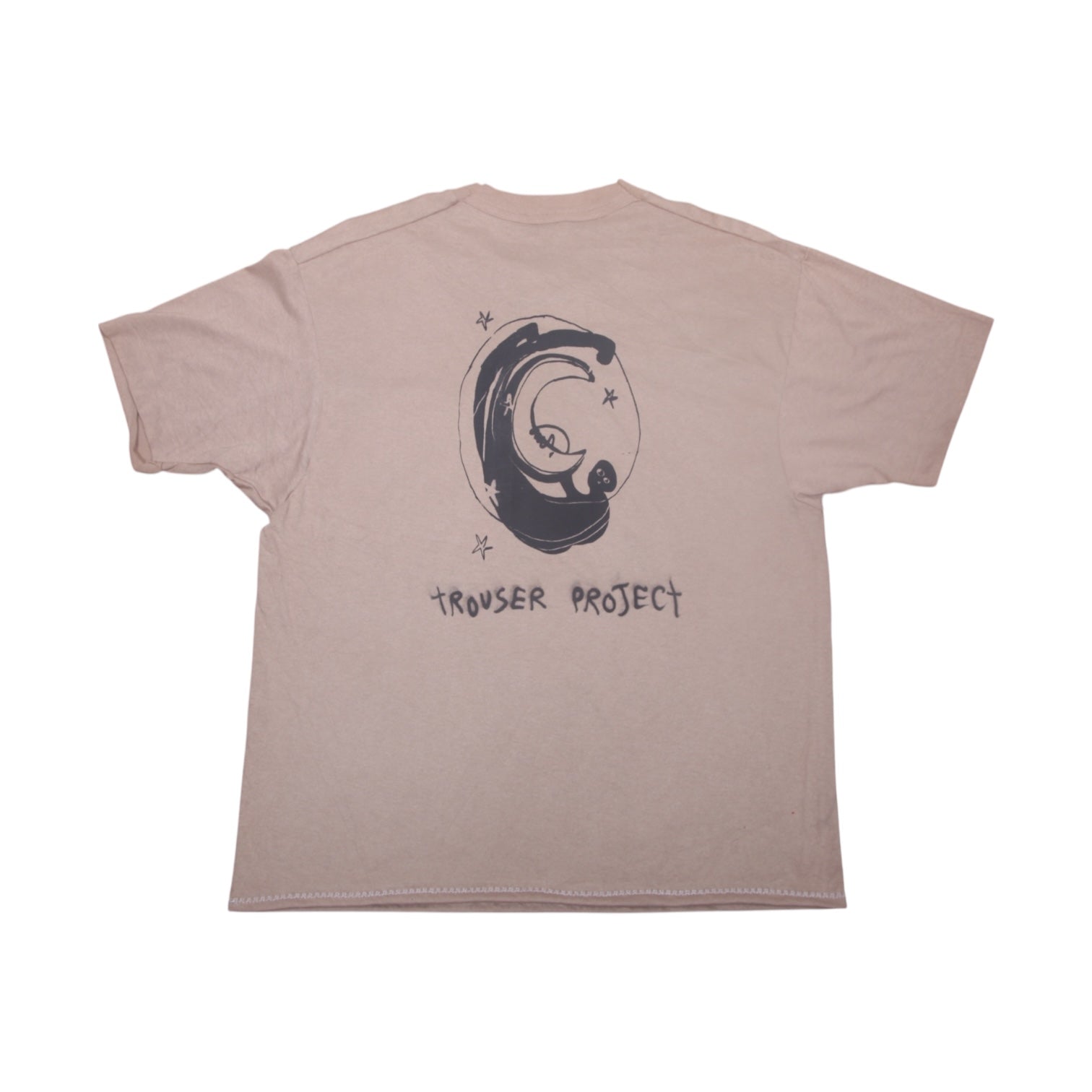 Pre-loved beige tan T-Shirt with graphic screen-print design and airbrush. Sustainable, hand printed, and one-of-a-kind. Please note that all items are sourced second hand so may have some wear, any marks have been covered with the new designs. The label may say a different size, I have used a standard sizing chart to keep it consistent.
