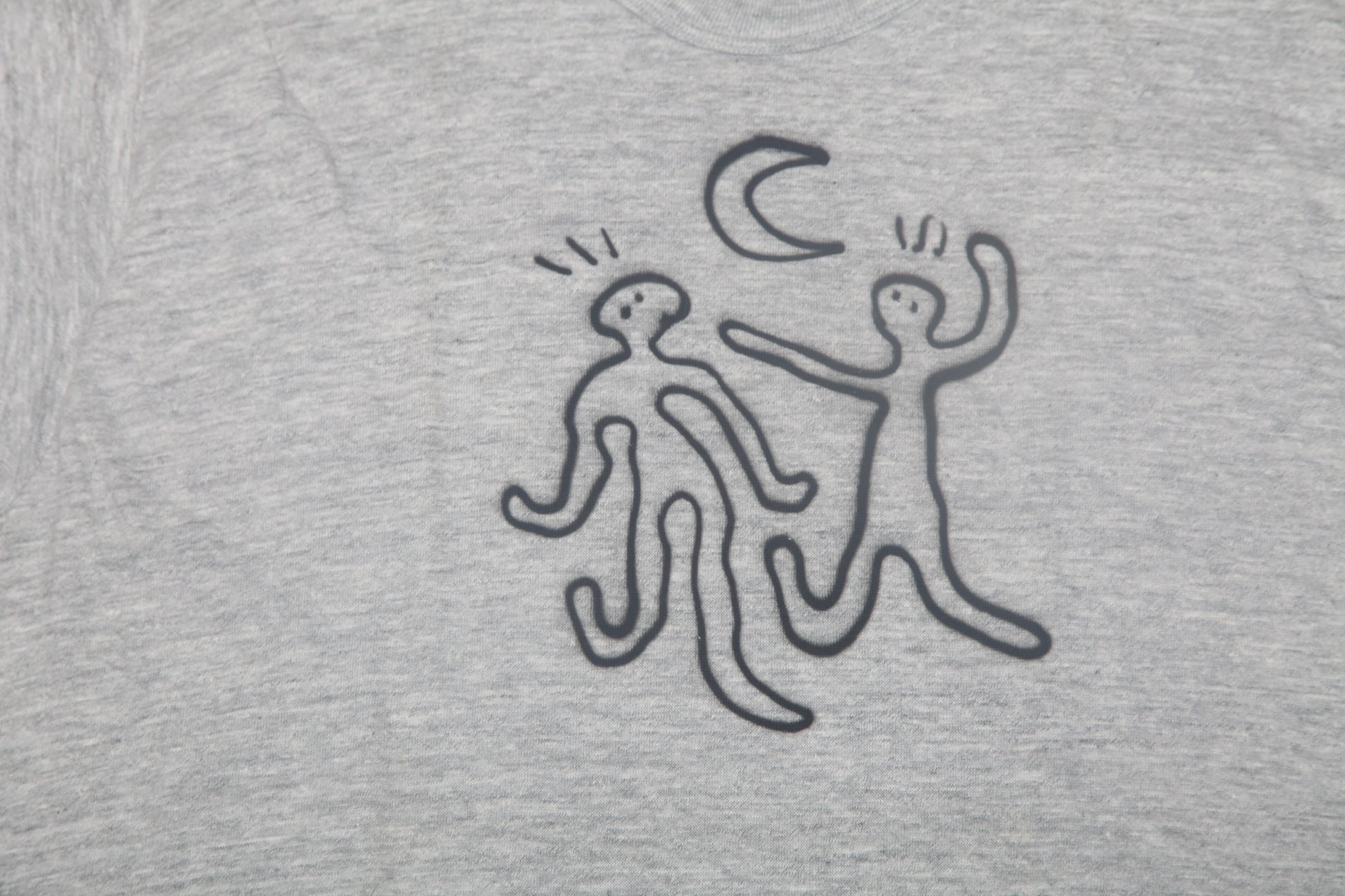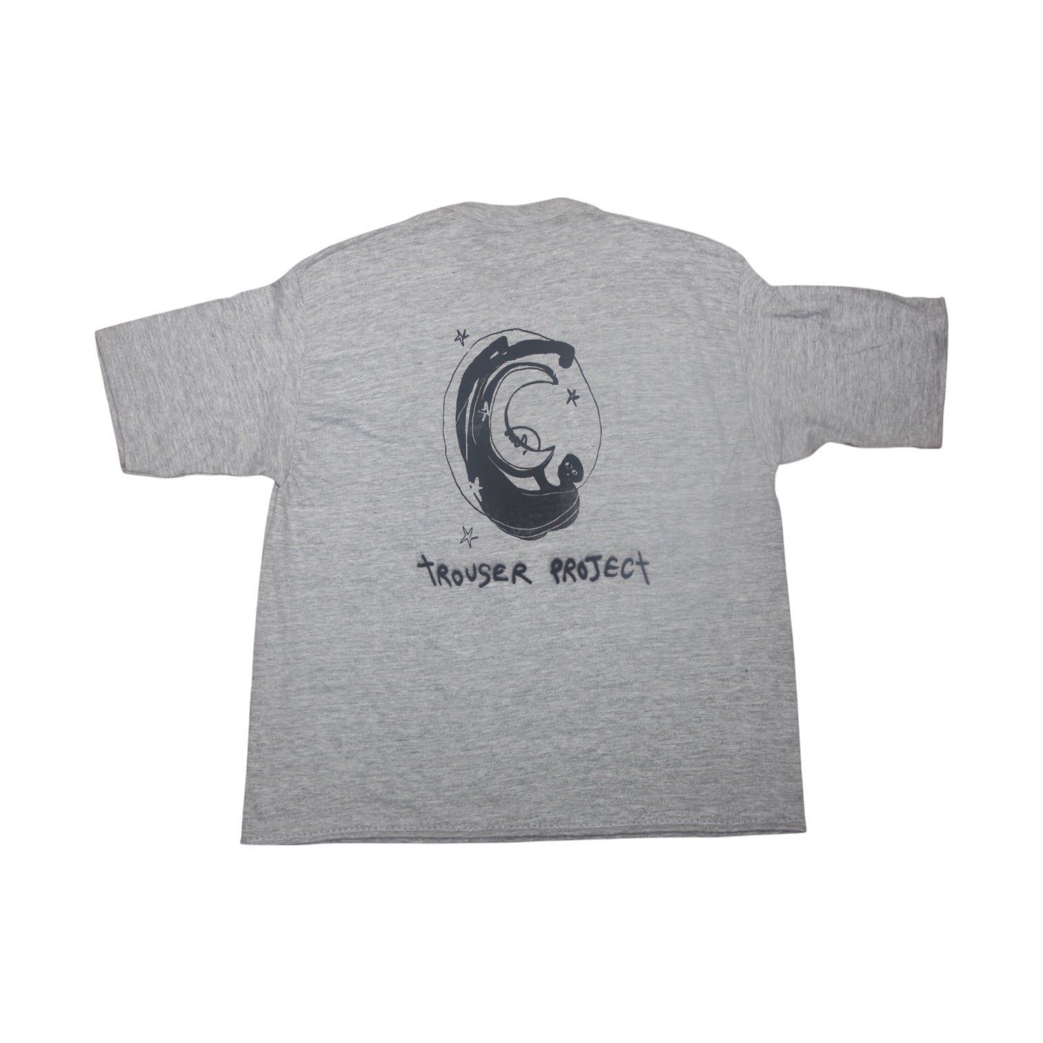 Pre-loved grey T-Shirt with graphic screen-print design. Sustainable, hand printed, and one-of-a-kind. Please note that all items are sourced second hand so may have some wear, any marks have been covered with the new designs. The label may say a different size, I have used a standard sizing chart to keep it consistent.