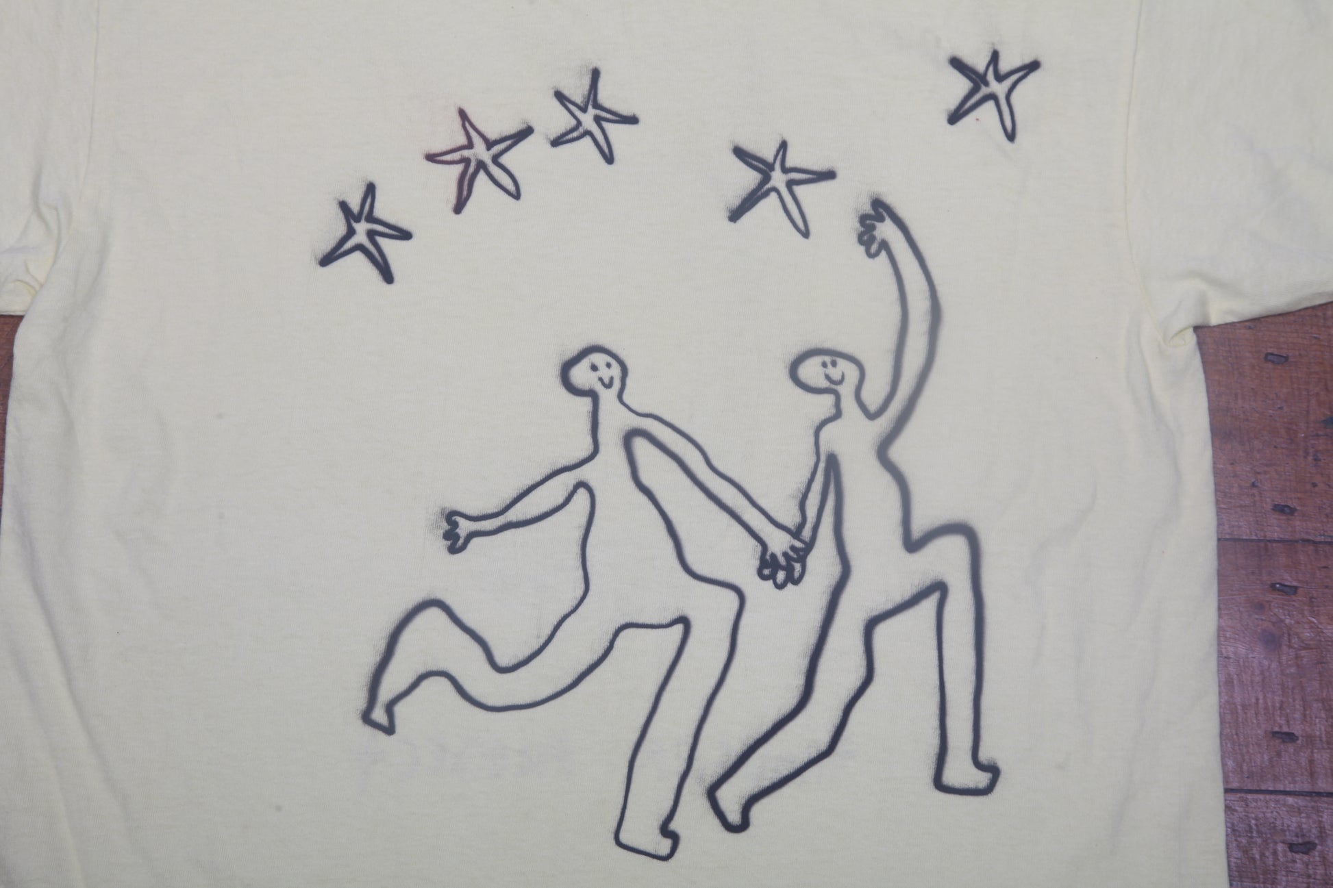 Pre-loved light yellow T-Shirt with graphic screen-print design. Sustainable, hand printed, and one-of-a-kind. Please note that all items are sourced second hand so may have some wear, any marks have been covered with the new designs. The label may say a different size, I have used a standard sizing chart to keep it consistent.