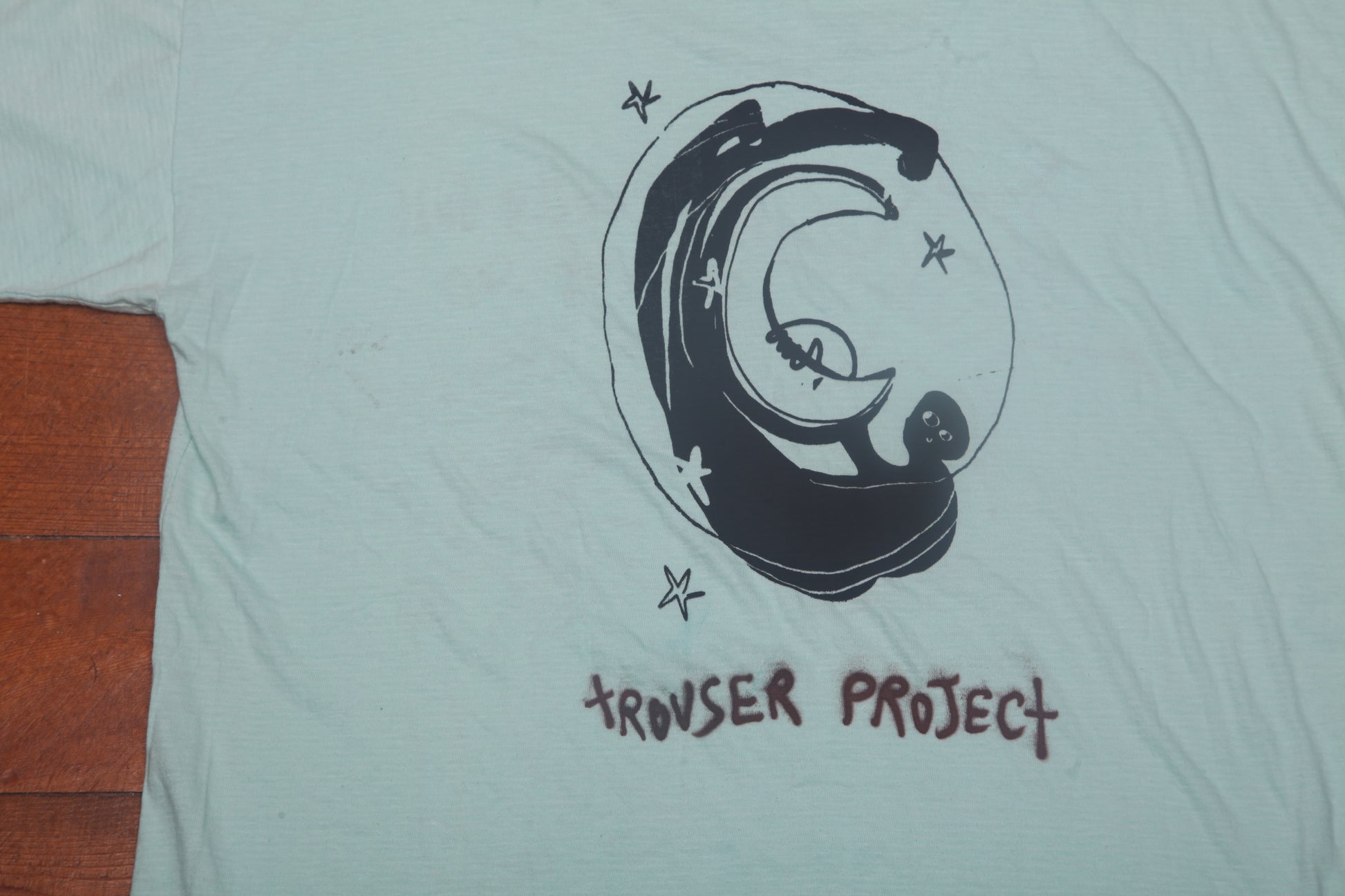 Pre-loved mint green T-Shirt with graphic screen-print design and airbrush. Sustainable, hand printed, and one-of-a-kind. Please note that all items are sourced second hand so may have some wear, any marks have been covered with the new designs. The label may say a different size, I have used a standard sizing chart to keep it consistent.