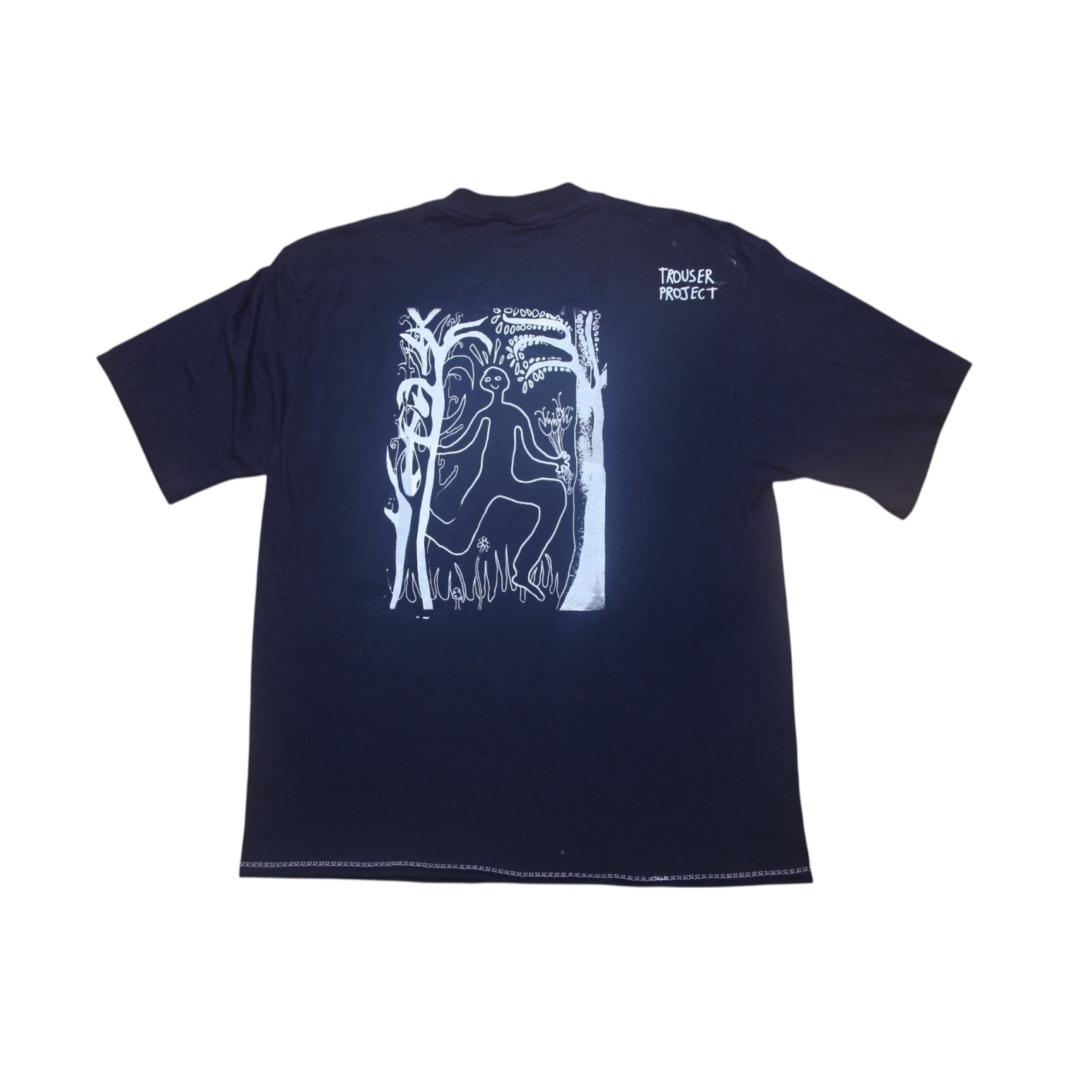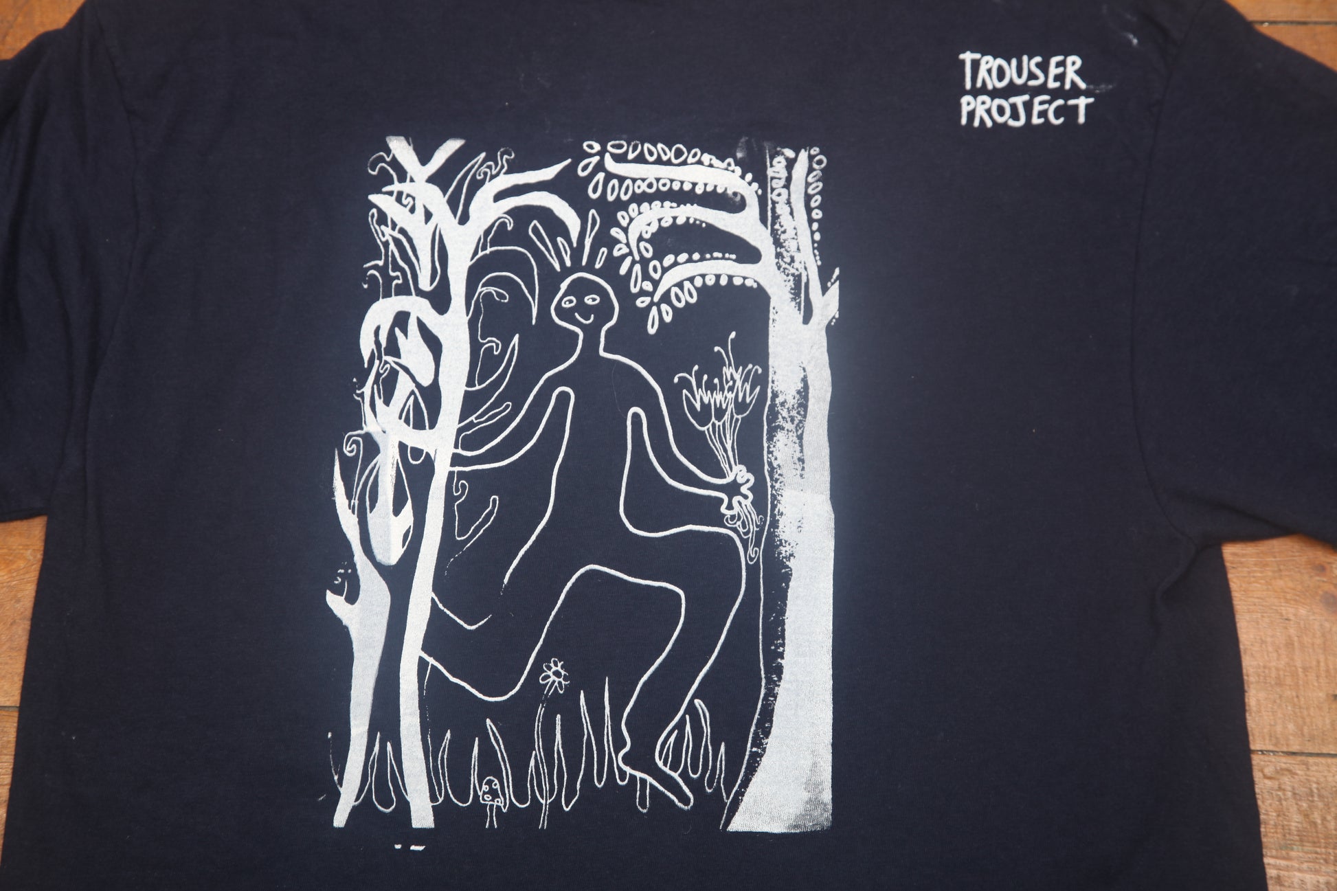 Pre-loved black T-Shirt with graphic screen-print design. Sustainable, hand printed, and one-of-a-kind. Please note that all items are sourced second hand so may have some wear, any marks have been covered with the new designs. The label may say a different size, I have used a standard sizing chart to keep it consistent.