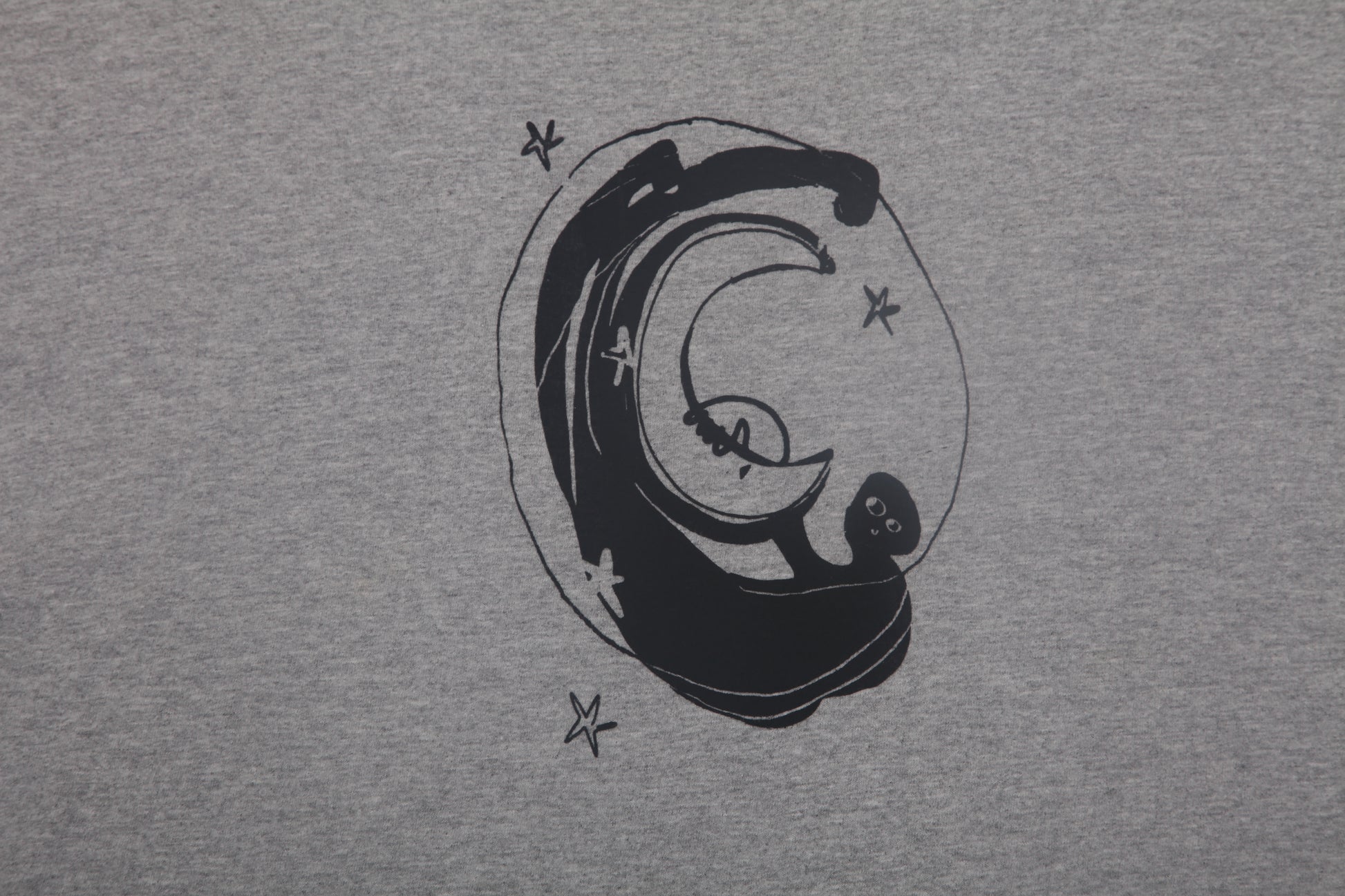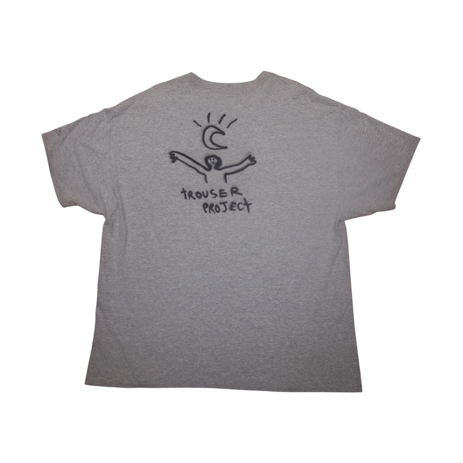 Pre-loved grey T-Shirt with graphic screen-print design. Sustainable, hand printed, and one-of-a-kind. Please note that all items are sourced second hand so may have some wear, any marks have been covered with the new designs. The label may say a different size, I have used a standard sizing chart to keep it consistent.