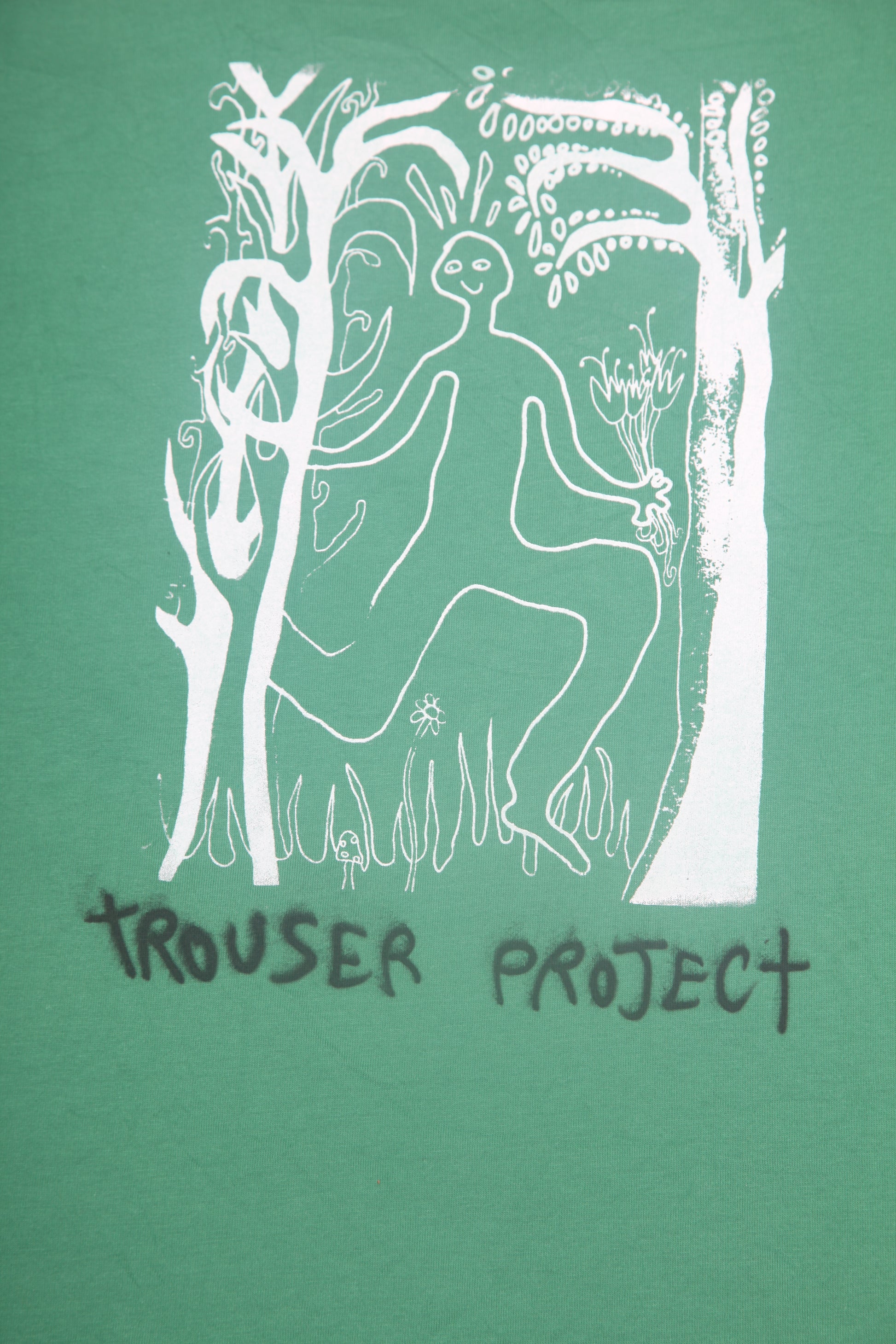 Pre-loved green T-Shirt with graphic screen-print design. Sustainable, hand printed, and one-of-a-kind. Please note that all items are sourced second hand so may have some wear, any marks have been covered with the new designs. The label may say a different size, I have used a standard sizing chart to keep it consistent.