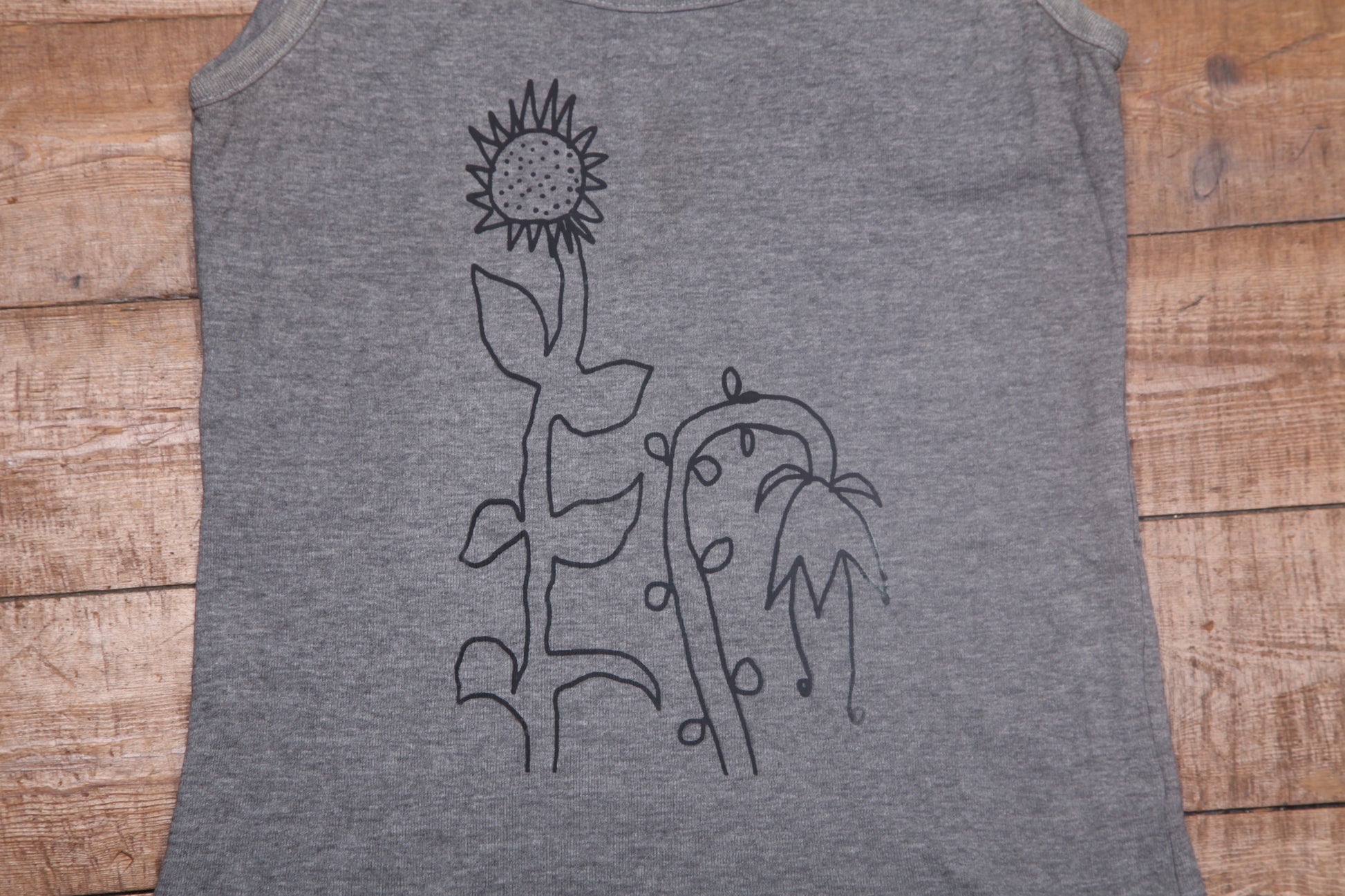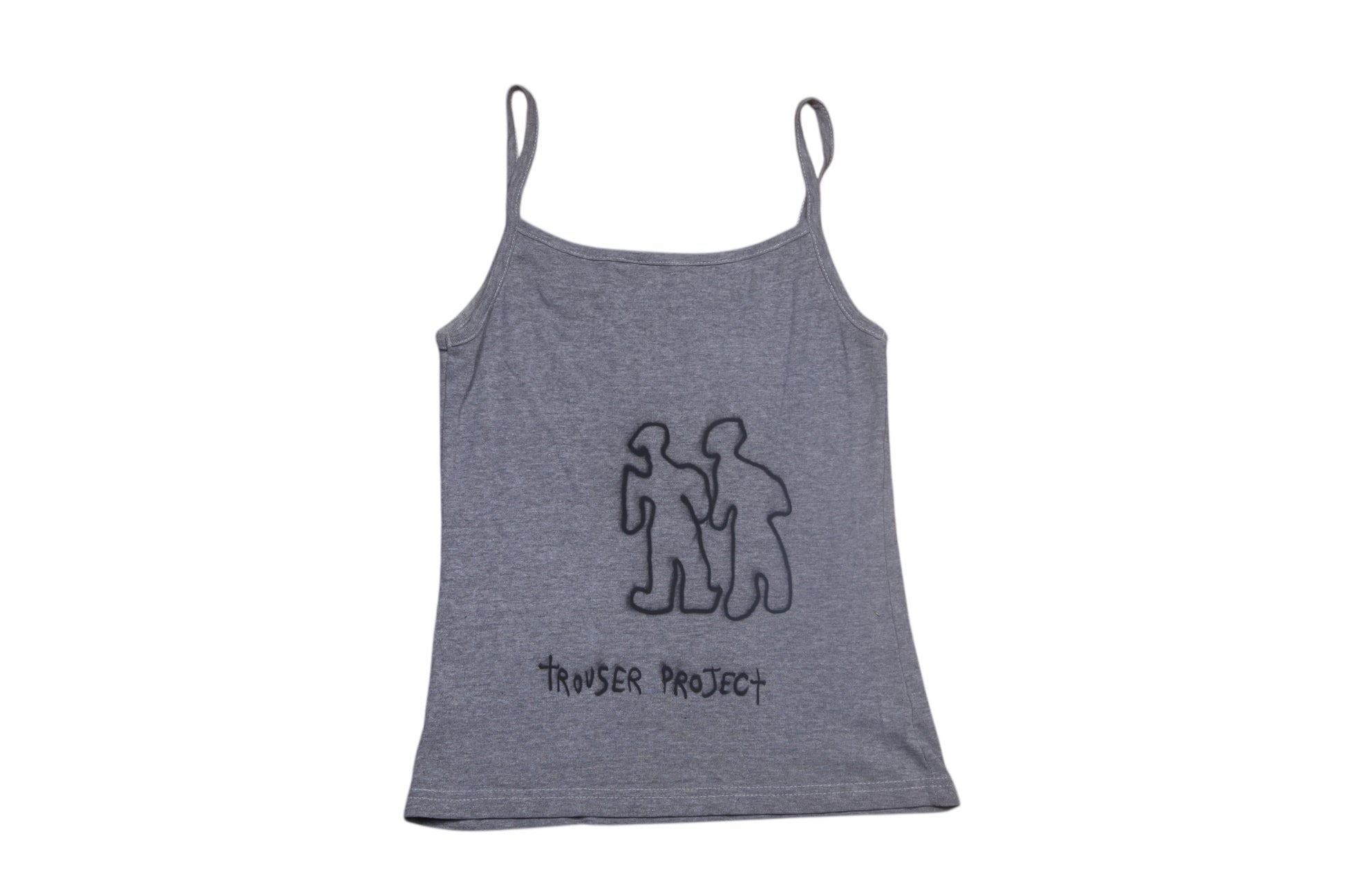 1of1 Upcycled strappy grey vest top with graphic screenprint and freehand airbrush designs.