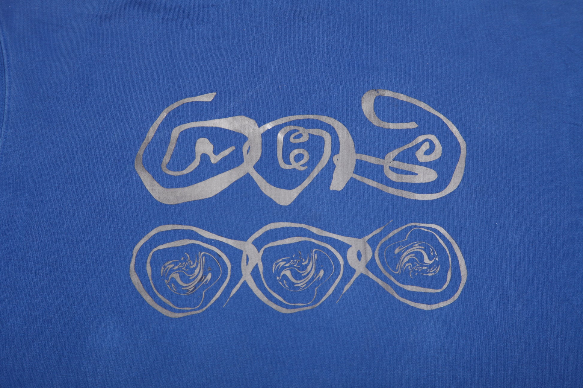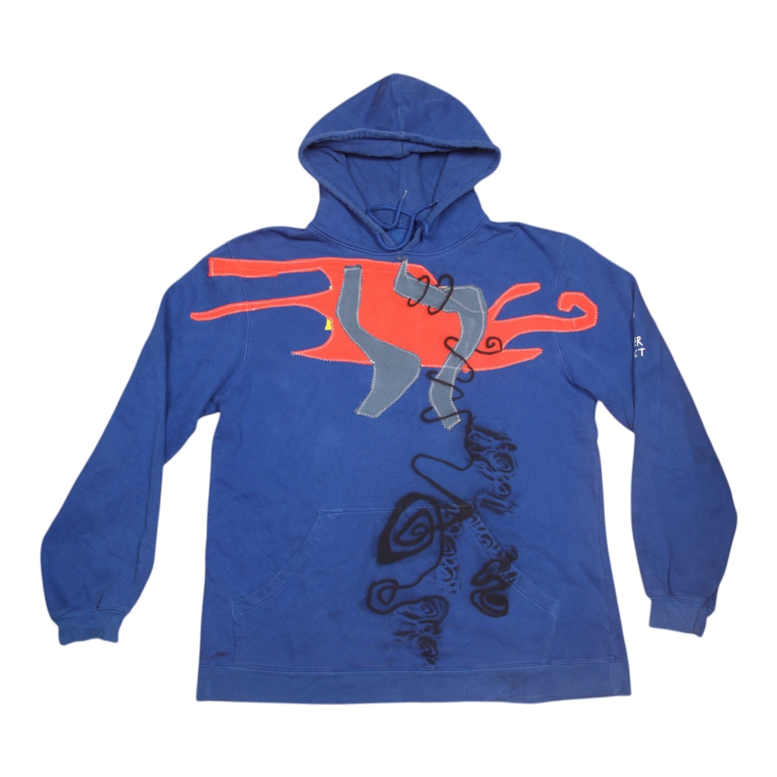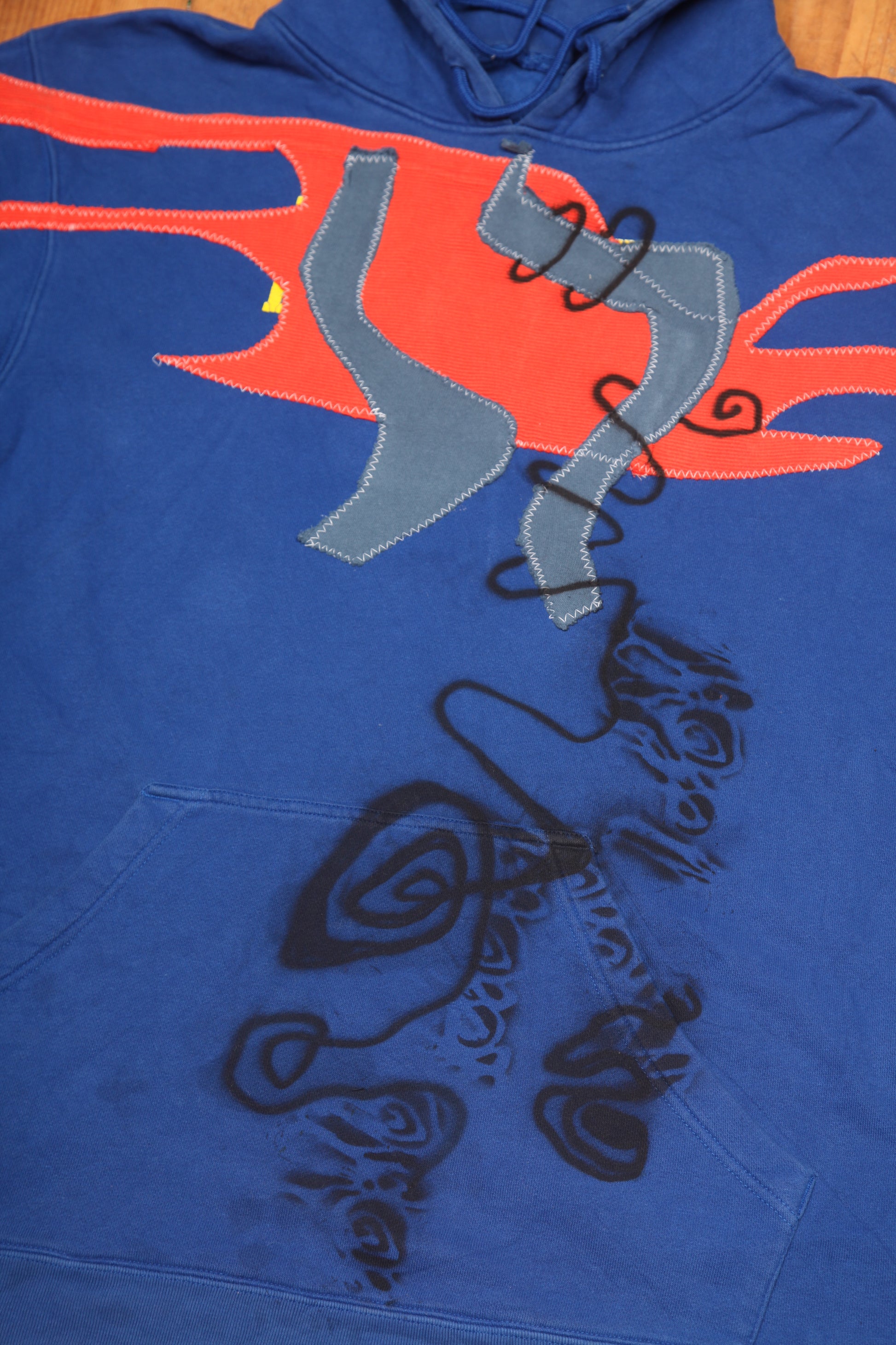 Vintage upcycled royal blue Adidas hoodie, reworked with screenprint designs. 1of1 item made with love in our Brighton studio.